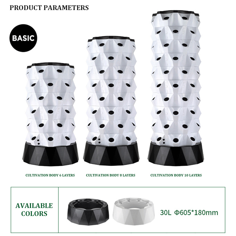 30L 8 Layer 64 Holes Hidroponia Tower Container Microgreens Vertical Hydroponics Greenhouse Systems 24